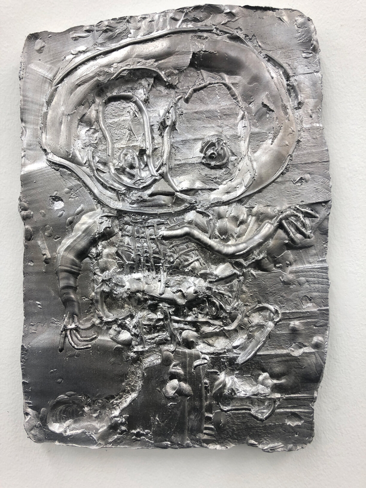 Ein wild vibrierendes Gewimmel wühlender Linien. Überbordende Formen und Flächen, die sich unendlich überlagern. Alles in leuchtenden Acryl-, Öl- und Sprayfarben. Mit expressivem Duktus auf grossformatigen Leinwänden aufgetragen.