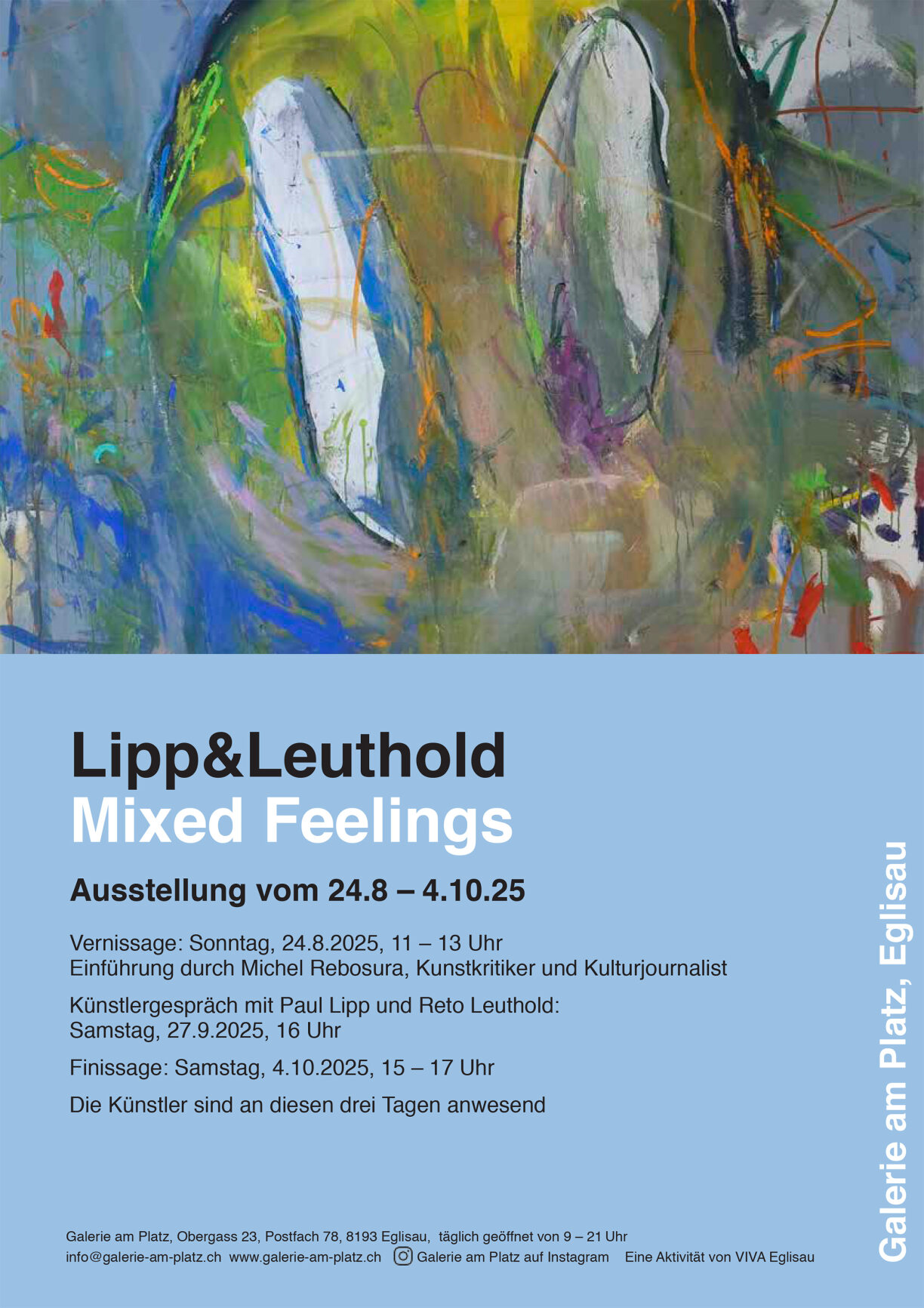 Das Werk von Lipp&Leuthold wird vom Dialog geprägt. Gemeinsam arbeiten sie an Leinwänden, testen die Grenzen der Malerei aus und stellen Hinterfragen die Autor:innenschaft. So zeugt ihre Arbeitsweise auch von einer Offenheit gegenüber dem Prozessualen sowie dem Nachdenken über institutionelle Konventionen, die Kunst selbst, ihren Markt oder Sinn und Unsinn. Das Duo besteht aus Reto Leuthold (*1977 in Thun) und Paul Lipp (*1977 in Werthenstein). Seit längerer Zeit arbeiten sie zusammen in der Stadt Luzern.Vernissage